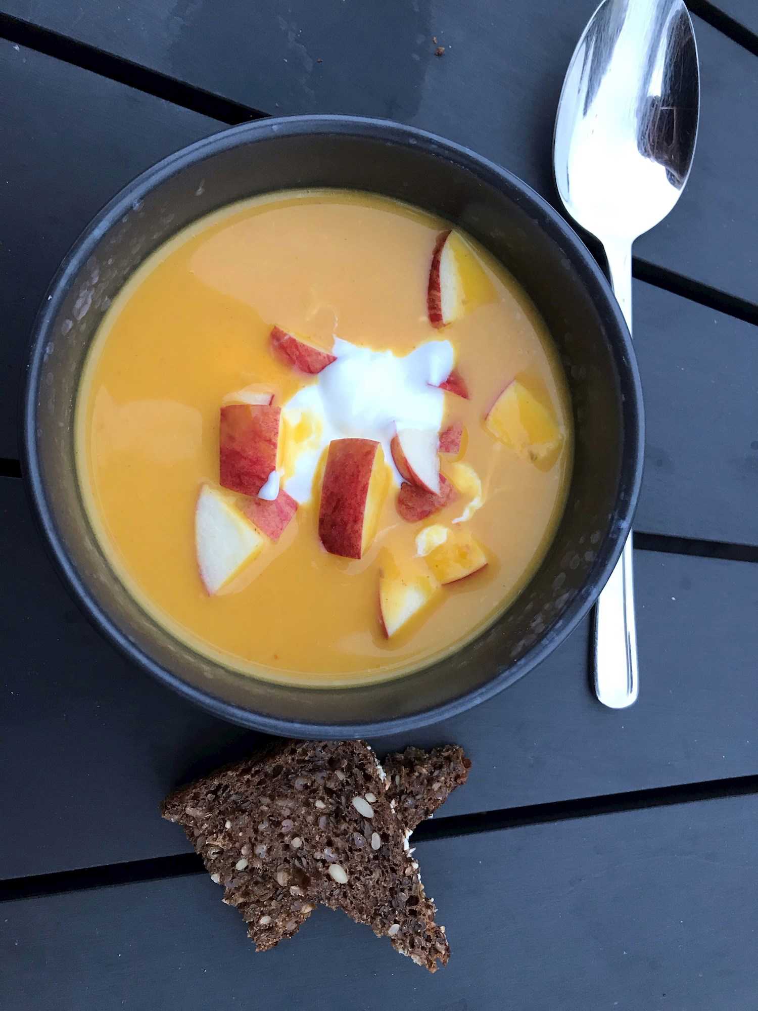 - Topping: F.eks. æbletern, Cremefraiche 6% og evt. ristede græskarkerner