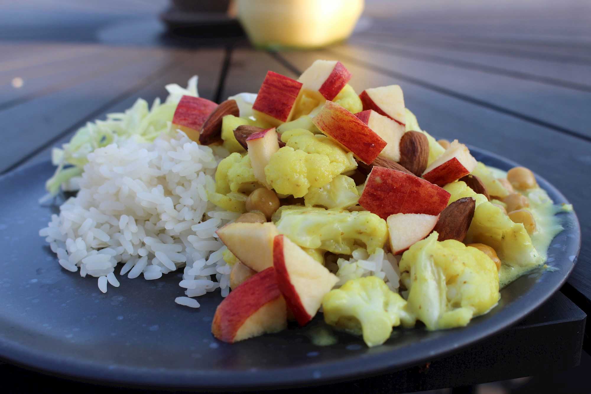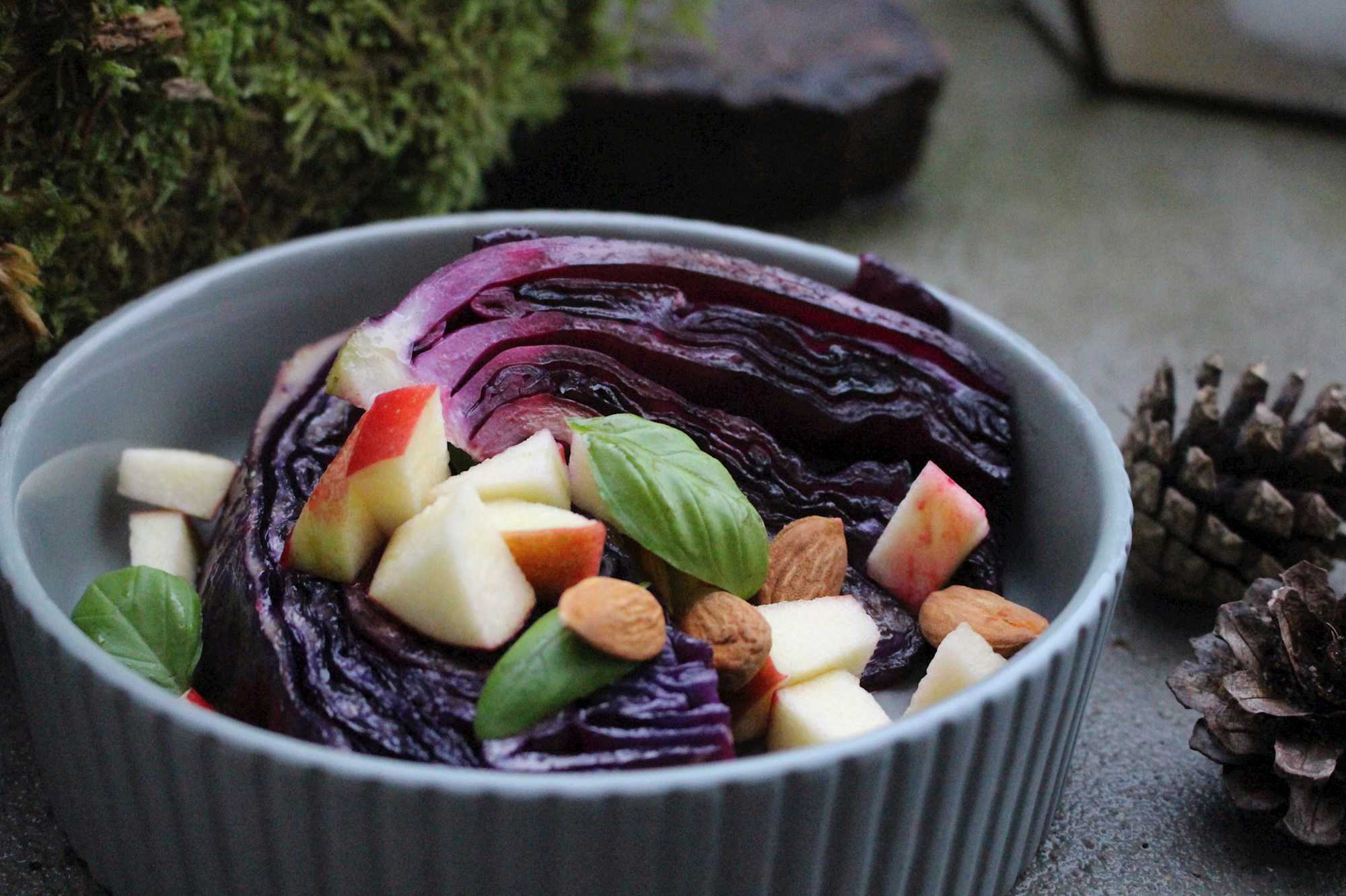 - Server kålen med ristede mandler, æbletern og evt. friske krydderurter.
