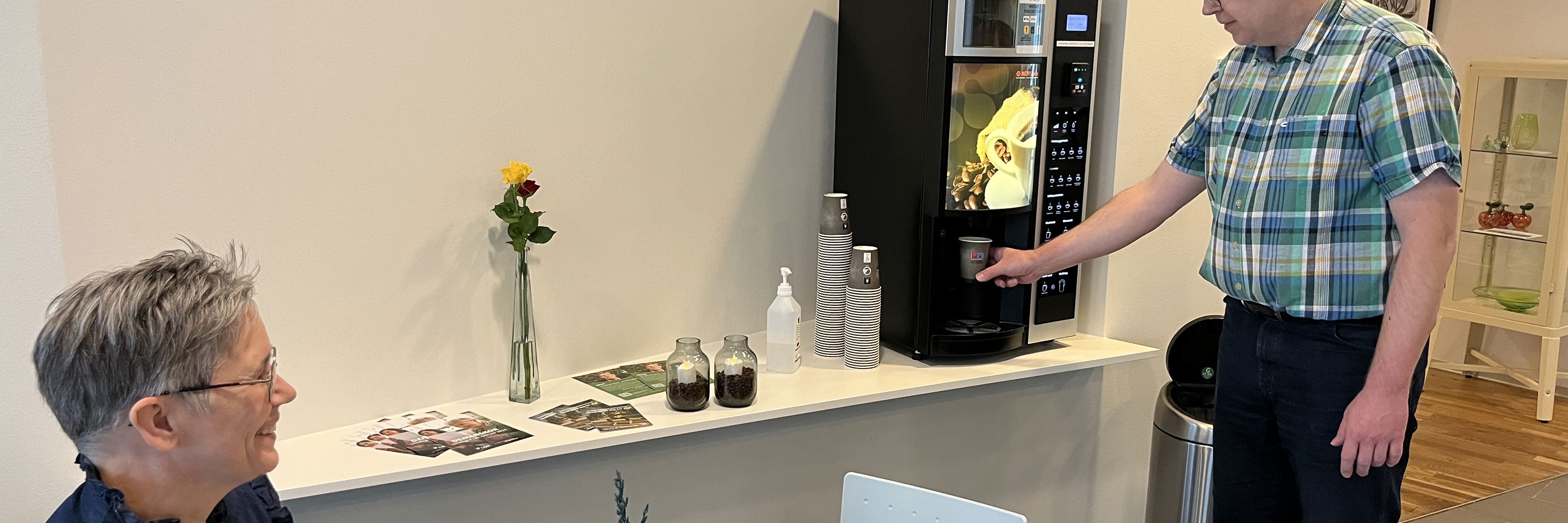 Vi har fået en automat, hvor du kan købe en kop kaffe, hvis du besøger os i Sundhedscenteret. Nyd den før eller efter samtale, træning eller forløb.